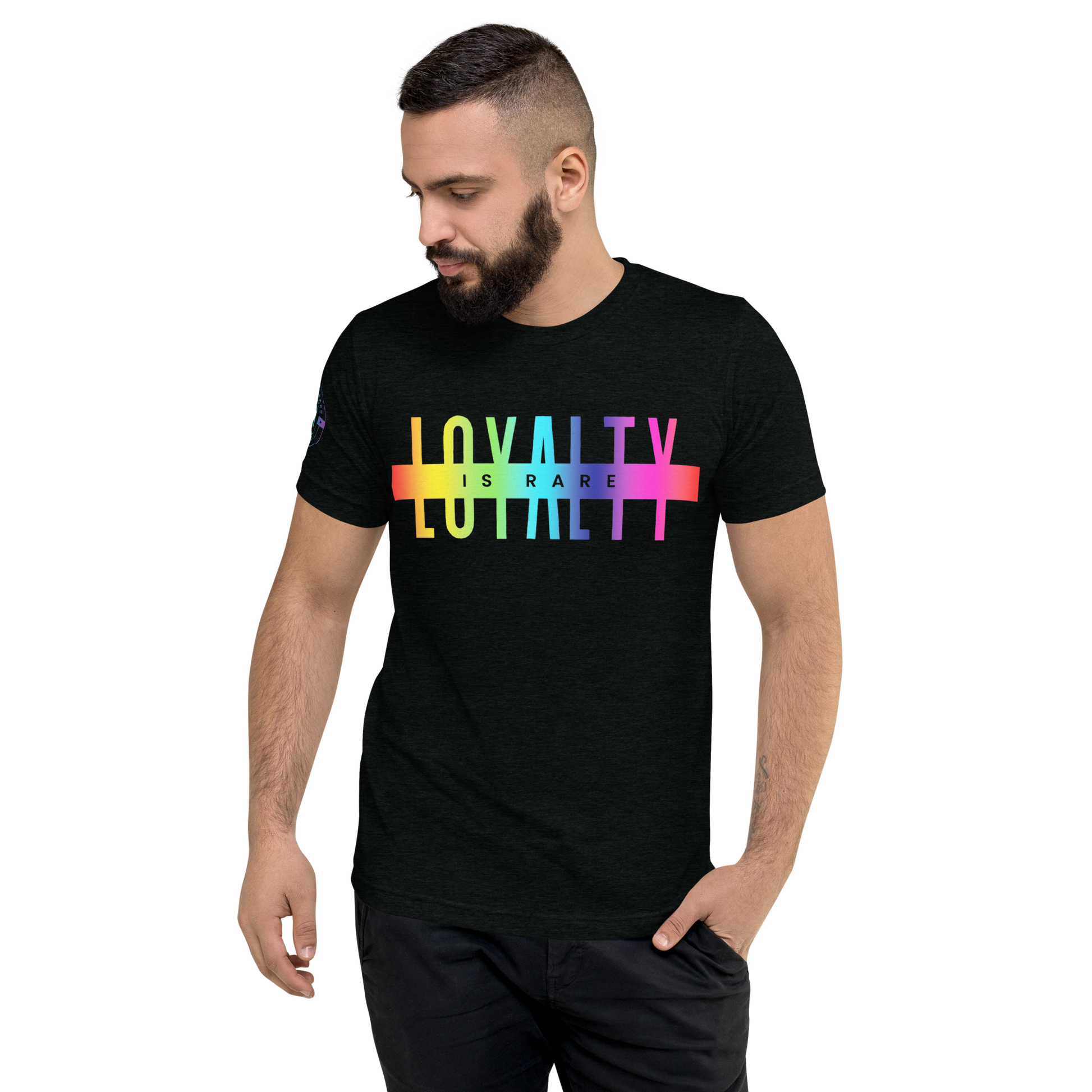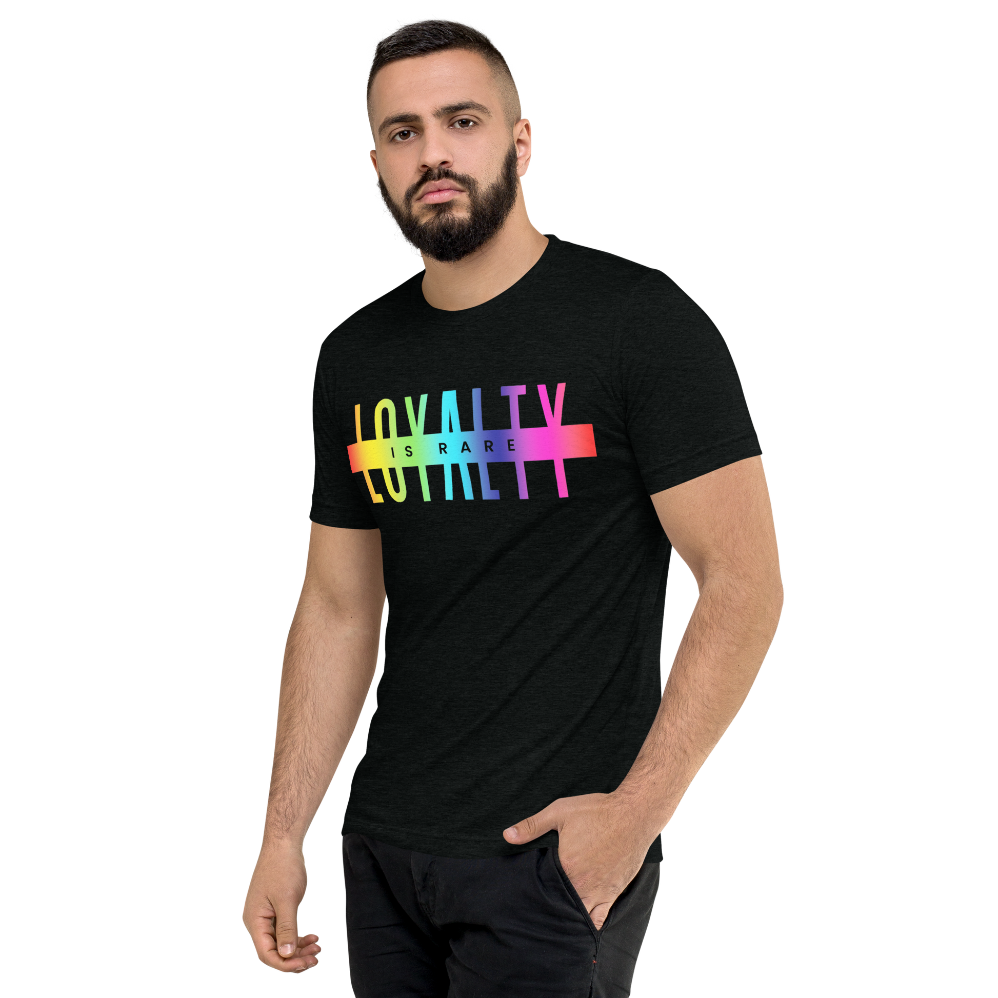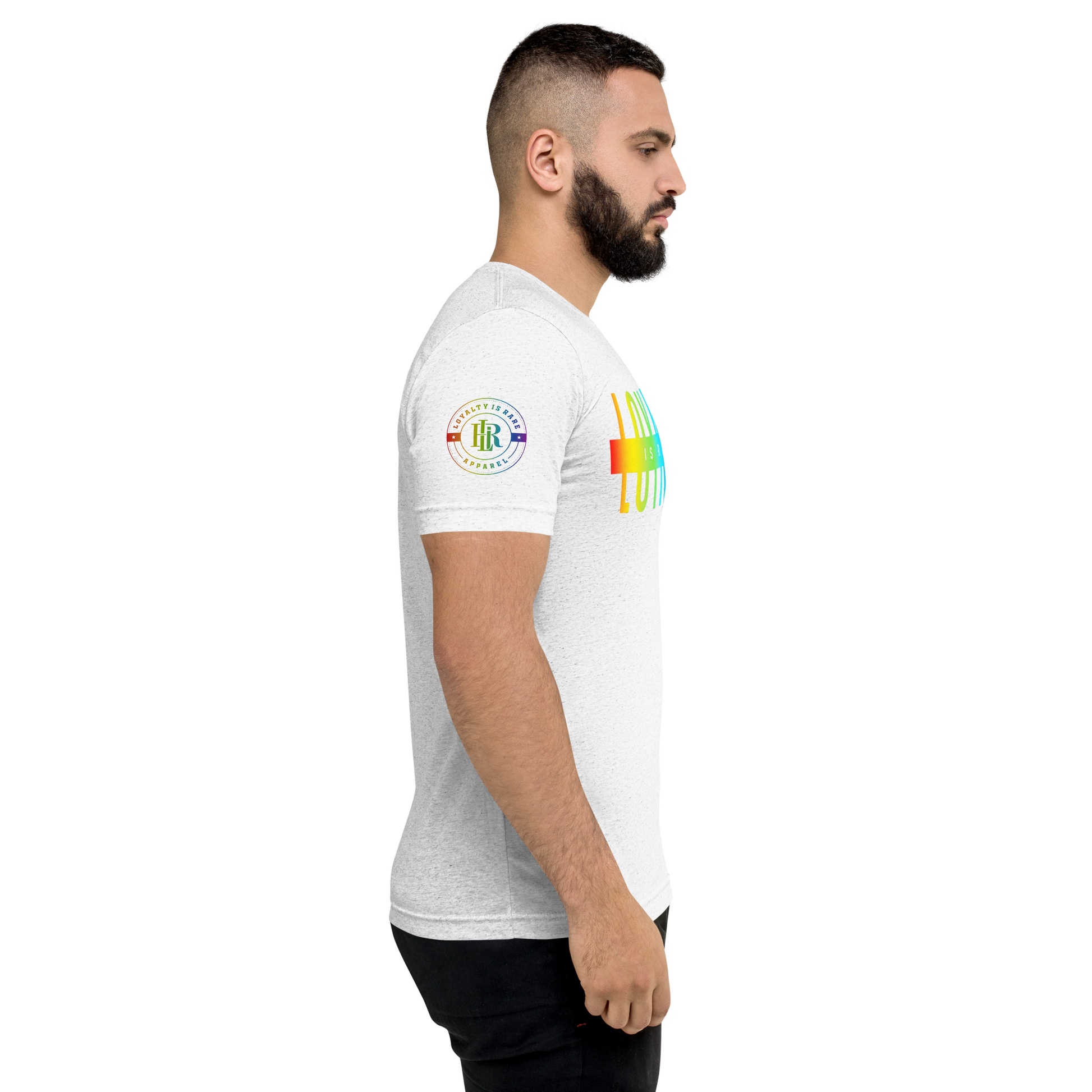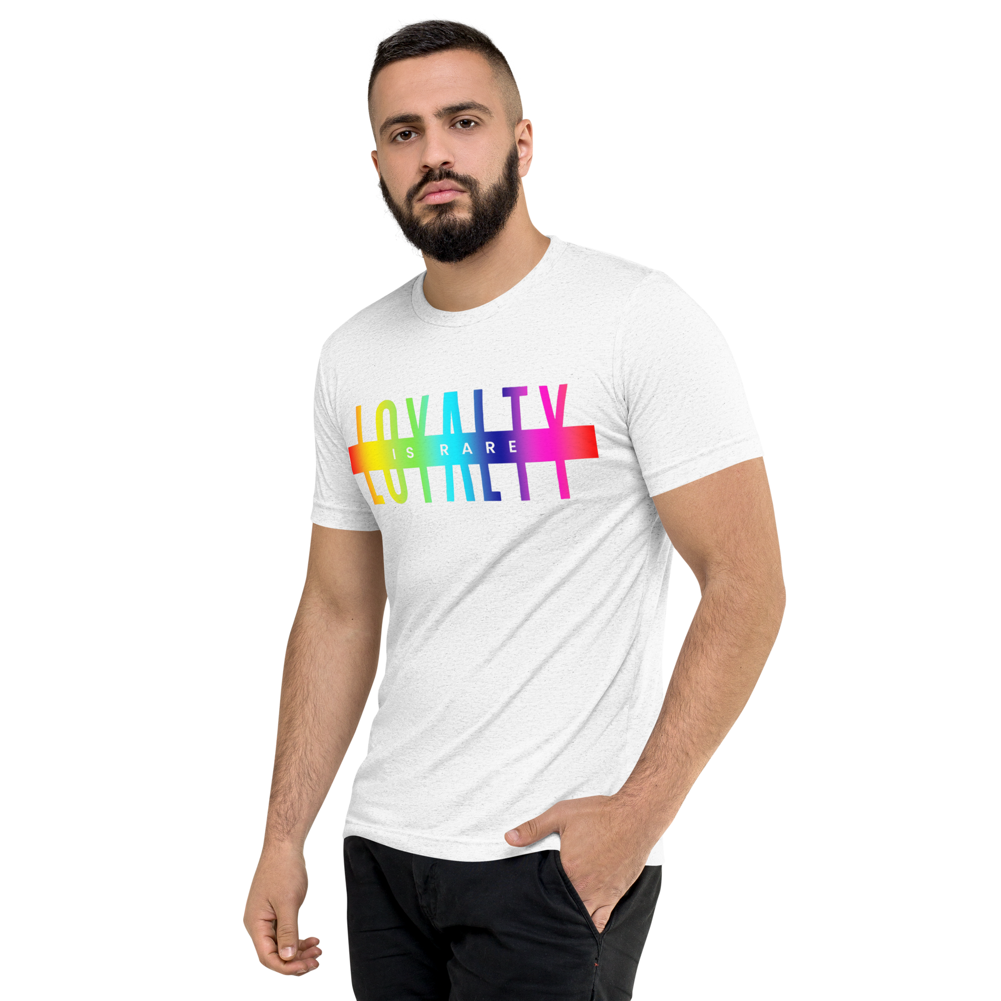 The Pride Loyalty Tri-Blend Tee is made from a premium blend of polyester, combed ring-spun cotton, and rayon for an ultra-soft, breathable feel with added stretch and durability. Featuring a regular unisex fit and lightweight fabric, this LGBTQ+ Pride t-shirt offers all-day comfort and a subtle vintage look that makes each design unique. Pre-shrunk and side-seamed for long-lasting wear, it’s perfect for Pride events, festivals, casual outfits, or everyday streetwear.